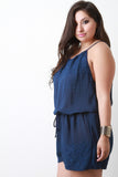 This alluring plus size romper features a scoop neckline with an adjustable drawstring closure at nape, elasticized waistline, beautiful lace trims, and shorts bottom half. Accessories sold separately. Self: 60% Rayon, 40% Polyester. 100% Polyester.