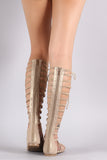 This lace-up front design, studded accent along the shaft, open toe silhouette, lightly padded insole, and back-zip closure.