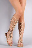 This stylish sandal features an open toe silhouette, gold metallic rings embellishment held by knots, and rear zip-up closure. Finished with a lightly padded insole for comfort.