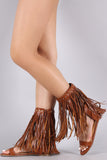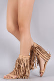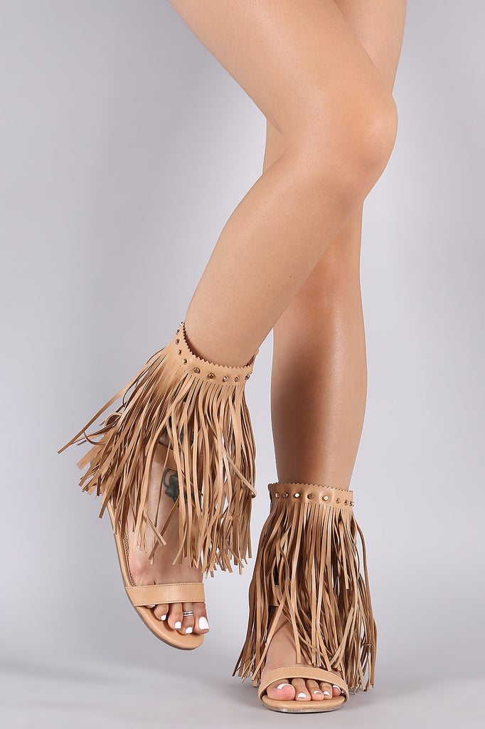 This boho-chic fringe detailing, decorative studded hardware decor, and single strap across vamp. Finished with a lightly padded insole and convenient side-zip closure.