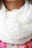This scarf features a thin multi pattern knit a long with an infinity construction. 100% Acrylic.