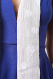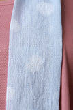 This lovely scarf features lightweight pastel fabric, subtle polka dots, and slanted ends.