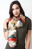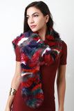This scarf features a multi-colored faux fur fabrication, extra long thin scarf design, with a smooth satin lining. 100% Polyester.