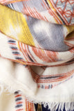 This blanket features a woven fabrication, frayed fringe edges, and Navajo inspired pattern. Can be worn as a shawl or over-sized scarf. 100% Acrylic.