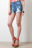 Step into this A Cut Above High Waisted Shorts for a look that's more than ordinary! These denim shorts features distress holes at front and back pockets, fringe cutoff hemline, classic 5-pockets design, belt loops, zipper fly, finished with a single button closure. Accessories sold separately. 100% Cotton.