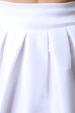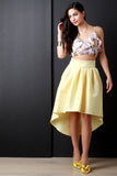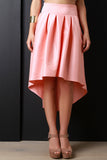 This flirty skirt features a crisp woven knit fabrication, box pleating design, back bow detail, and finished with a high-low hemline. Accessories sold separately. Made in U.S.A. 60% Polyester, 35% Nylon, 5% Spandex.