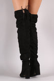 Suede Tassel Drawstring Chunky Heeled Over-The-Knee Boots