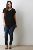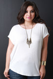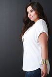 This plus size top features a jersey knit fabrication, round neckline, cap sleeves design, and curved hemline. Accessories sold separately. Made in U.S.A. 95% Rayon, 5% Spandex.