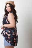 This beautiful floral print chiffon fabrication, spread collar design, sleeveless construction, button up front, and high-low hemline. Accessories sold separately. Made in U.S.A. 100% Polyester.