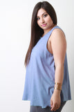 This plus size top features a round neckline with grommets embellishment, keyhole cutout design, sleeveless construction, and flowy curved hemline. Accessories sold separately. Made in U.S.A. 100% Cotton.
