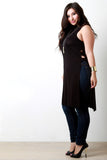 This plus size top features a jersey knit fabrication, turtle neck design, sleeveless fit, and side cutout detail. Finished with a high-low maxi-length hemline. Accessories sold separately. Made in U.S.A. 95% Rayon, 5% Spandex.