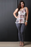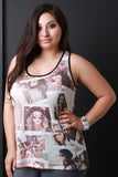 This plus size top features a loose knit with models graphic prints, racer back tank top design, scoop neckline, and curved hemline. Accessories sold separately. Made in U.S.A. 88% Rayon, 12% Polyester .