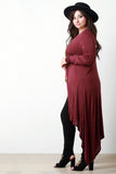 This plus size cardigan features a soft lightweight knit fabrication, open front design, longsleeves construction, asymmetrical hem, and longline silhouette. Accessories sold separately. Made in U.S.A. 96% Rayon, 4% Spandex.