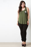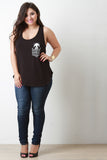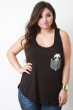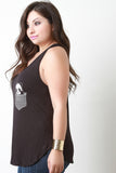 This plus size tank top features a jersey knit fabric, cute panda in a pocket print design, scoop neckline, and elasticized racerback. Accessories sold separately. Made in U.S.A. 97% Rayon, 3% Spandex.