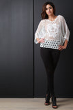 This lovely relaxed fit crochet knit fabrication with rosette design at the front and back. Finished with v neckline, dolman sleeves, and straight hemline. Accessories sold separately. Made in U.S.A. 100% Cotton.