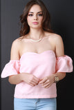 This strapless tube top features a snap-on elasticized short bell sleeves. Finished with a hidden zipper fastener at back and faux satin underlay. Accessories sold separately. Self: 100% Polyester. Lining: 100% Polyester.