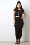 This plus size top features a soft vegan suede fabrication, cap sleeves, rounded neckline. Accessories sold separately. Made in U.S.A. 95% Polyester, 5% Spandex.