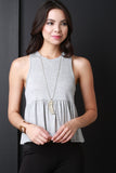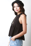 This casual sleeveless construction, and round neckline. Finished with a keyhole cutout open back. Accessories sold separately. Made in U.S.A. 95% Rayon, 5% Spandex.