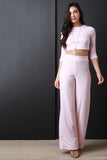This crop top features soft jersey knit, round neckline, and long raglan sleeves. Accessories sold separately. Made in U.S.A. 87% Polyester, 10% Rayon, 3% Spandex.