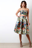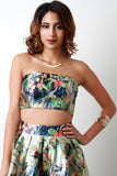 This tube top features a silky knit fabrication, floral and nature print throughout, and elasticized trim. Finished with a rear zipper fastener. Accessories sold separately. 100% Polyester.