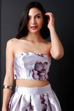 This tube top features a silky knit fabrication, floral print pattern, and elasticized trim. Finished with a rear zipper fastener. Accessories sold separately. 100% Polyester.