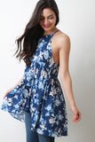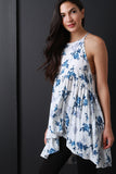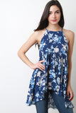 This sleeveless top features floral print, spaghetti straps, empire waist, and high-low hemline. Accessories sold separately. 100% Rayon.