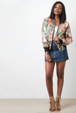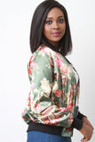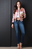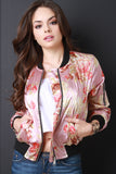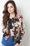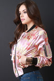 • Charmeuse Floral Zip Accent Bomber Jacket