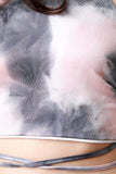 This open back top features a smooth stretchy knit fabric, splashed-style tie dye print, halter neck with shoulder straps cross front to a back tie end, and cropped hemline. Accessories sold separately. Made in U.S.A. 95% Polyester, 5% Spandex.