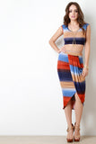 This casual crop top features a jersey knit fabric, multicolored stripe design, scoop neckline, and sleeveless fit. Accessories sold separately. Made in U.S.A. 95% Rayon, 5% Spandex.