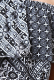 This cutesy top features a jersey knit designed with geo bohemian print, ruffled off the shoulder neckline, and cropped hemline. Accessories sold separately. Made in U.S.A. 96% Polyester, 4% Spandex.