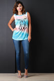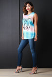 This tank top features a soft knit fabrication, tie dye coloring, graphic print decorative bull skull, scoop neckline, low cut armholes, and a relaxed fit. Accessories sold separately. Made in U.S.A. 95% Rayon, 5% Spandex.