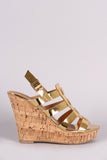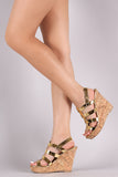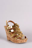 This lovely open toe wedge features a multiple laddered straps run through a skinny tongue-like piece for a caged look. Finished with a cork platform wedge heel and adjustable slingback strap with buckle fastening. Lightly padded insole for comfort.