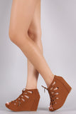 This lovely wedge features a teardrop cutout design, open toe silhouette, lace-up front, and platform wedge heel. Finished with a lightly padded insole and rear zipper closure for easy on/off.