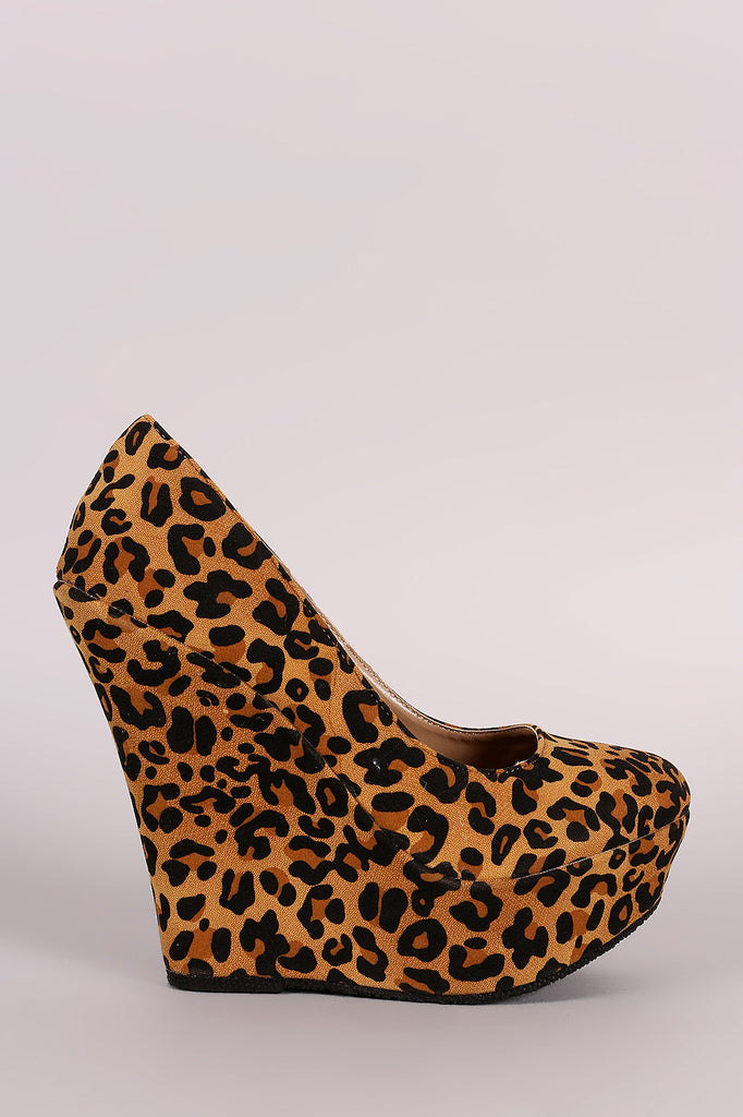 This vintage wedge features a vegan suede upper with leopard print, round toe silhouette, scoop vamp, and wrapped platform wedge. Finished with a lightly cushioned insole and easy slip-on style.