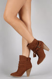 Qupid Suede Strappy Buckle Chunky Stacked Heeled Booties