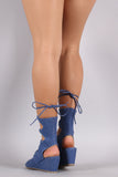 Liliana Denim Lace Up Mid Calf Gladiator Wedge