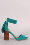 Breckelle Suede Tassel Ankle Cuff Chunky Heel