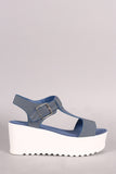 Bamboo Denim T-Strap Open Toe Lug Sole Flatform