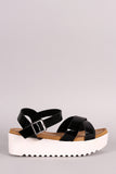 This flatform , featuring a cushioned sole. Classic two crossing straps at toe box with an adjustable ankle strap.