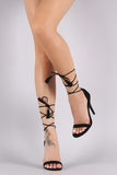 Anne Michelle Suede Tassel Lace-Up Open Toe Heel