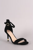 This open toe heel has a classic rear back with an adjustable ankle strap. Finished on a kitten heel, featuring a metallic gold accent.