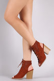 Qupid Perforated Lace Up Cutout Booties