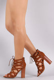Bamboo Suede Cutout Lace-Up Chunky Heel