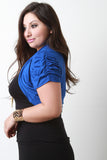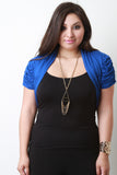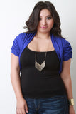 Shawl Collar Ruched Sleeve Open Front Crop Cardigan