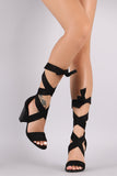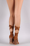 Suede Ribbon Wrap Open Toe Chunky Heel
