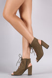 This fashionable lace up detail, and chunky heel. Finished with a lightly padded insole and side zipper closure for easy on/off.
