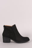 These chic booties feature a geometric perforation design, round toe silhouette, and block stacked heel. Finished with a cushioned insole and convenient rear zipper closure.