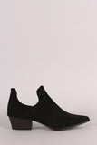 These western inspired pointy toe silhouette, and blocky stacked heel. Finished with lightly cushioned insole and slip-on construction.