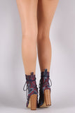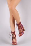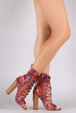Liliana Tribal Print Lace Up Chunky Heeled Booties