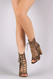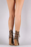 Liliana Camouflage Corset Lace Up Chunky Heeled Booties